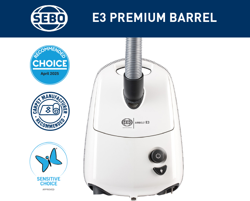 SEBO E3 Premium picks up dog hair, lint and threads from carpet and rugs with ease. The power brush has an electronic alert system, which indicates the correct brush height setting with optimum suction for outstanding cleaning results. Self-propulsion driven by the electric rotary brush roller offers fatigue-free cleaning even under the heaviest of fur cleaning frenzies!